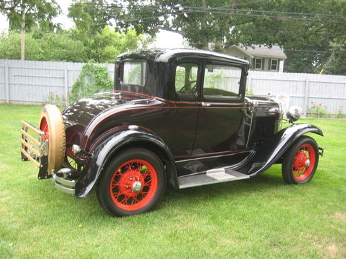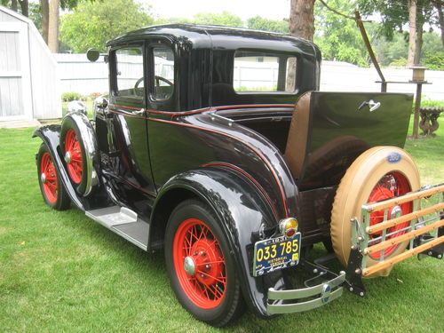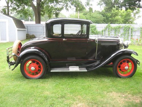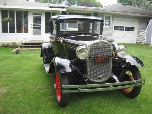 I am selling my 1931 Ford Model A Deluxe Coupe. I have owned this car for the past 15 years and have put no more than 500 miles on it during that time. It starts up and runs great every time- will do 50 mph all day long. Body is solid, no rust, tilt out front windshield, and has two spare tires. It has red painted spoke wheels with two-tone paint with red pinstripe. The rumble seat is original and in great shape. The upholstery is like new, no tear, holes, stains, etc. This car will turn heads, and will make a classic addition to anyone's collection. If you have any questions, please ask, serious inquiries only.