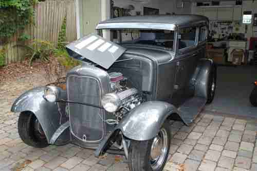 Selling this 1931 Ford Model A, tudor sedan. The hard stuff is done and you can do the finishing touches as you like. This all steel, 1931 titled Ford is ready for you to make it the way you want, the body is straight and there is absolutely zero rust anywhere on this car. the steel fenders are new as are the running boards and the four piece hood. This project was started about two years ago and now the owner has lost interest. The car has been put together right but people who know hotrods. The body work and prep is flawless, the lines are straight, the doors line up as do all body panels. The top has been chopped about 3 inches and done right. The fuel door has been move to the rear panel and when the fuel tank is installed, it will mount behind the rear seat. the dash and gauges have been installed as has the dash wiring harness. The rest of the wiring, to the lights and starter have yet to be installed. There is no interior in the car nor will it come with any. It does have the two front bucket seats. The car has a 1932 grille shell and 1932 dash, both fitted to look like they belong with the car. This list is just a bit of what the car has:
