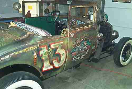 1929 Model A Sport Coupe Rat Rod. This car has a fully boxed Model A frame with a narrowed 9" Ford rear. The car has a Speedway front axle. There is a slick running basically stock 350 engine and a 350 Turbo transmission. The car has old school Stewart Warner gauges. This car has aftermarket wire spoke wheels that look just like the original ones with new Wide Whitewalls. The car has Lakester style headers with baffles. This car was a Sport Coupe and has had the top removed. I do not have the top for it. There is also a rumple seat. As you can see from the pictures the car has had old style pinstriping and graphics painted all over. This is a very unique Rat Rod and gets a lot of attention wherever it goes. I have a clear Va. title in my name for the car. Please feel free to ask any questions and I will be glad to tell you whatever I can about the car. I will require 10% deposit through Paypal within 3 days of auction end and the balance within 10 days. The buyer is responsible for pickup and I will gladly assist with loading. Any Checks will have to clear my bank before the car or title will be released. This can take up to 10 days. I may consider a partial trade for a T or A Model 2dr. Sedan. Thanks for looking and good luck bidding.