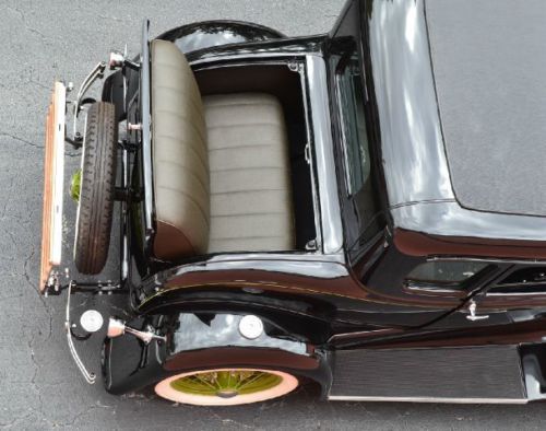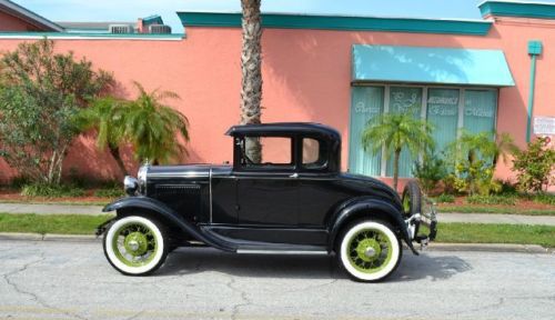 1931 Ford Model A Rumble Seat Coupe for Sale. AACA SENIOR AWARD WINNER. 201 cubic inch water cooled L head 4 cylinder engine, 3 speed manual transmission, mechanical brakes, 19" painted steel wheels with Firestone Gum Dipped whitewall tires, beautiful black exterior with a hand painted accenting pin stripe, polished stainless steel grill shell and light housings, radiator protector, turn signals, chrome side mirror, rear mounted spare, fold down luggage rack, cloth interior, pull down rear window shade, painted underside, restoration photos and documentation, AACA show papers. This multiple show winning Model A is one of the best we have seen in our company's 35 years in the Collector Car Industry! You don't want to miss this one! NOTE: This auction can be ended at ANYTIME,by the first deposit called into me,and I will stop the live auction at that time!! DO NOT wait until the end of the auction if you want this AACA award winning beauty!! I WILL STOP THE AUCTION FOR THE FIRST DEPOSIT CALLED INTO ME!-DAVE(727)504-8895.