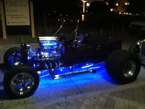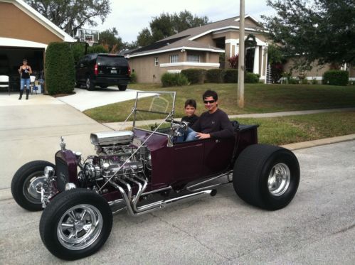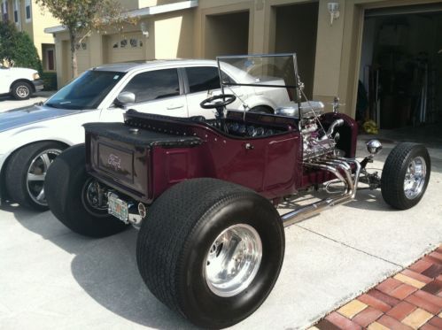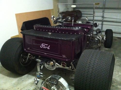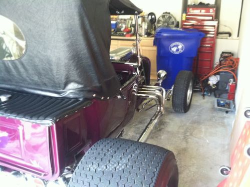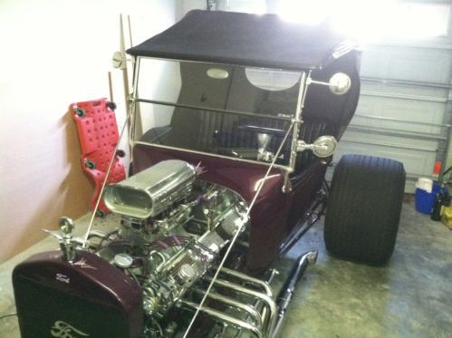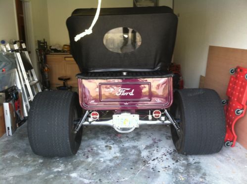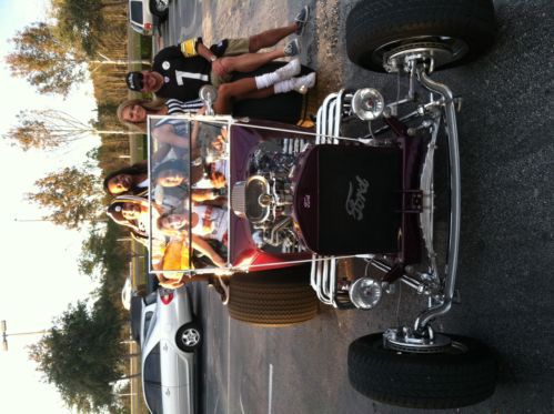 1923 T BUCKET 302 CUBIC INCH FORD SMALL BLOCK ENGINE W HIGHT STACK INTAKE AND DUAL HOLLEY 500s, MILE CAMS AND VINTAGE HEAD COVERS. 350 TURBO TRANS. 8" FORD REAR END. TRAILER HITCH. BEAUTIFULL HEAD LIGHTS.