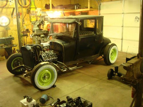 Up for sale is a 1926 Model T coupe Hot Rod, Rat Rod, Traditional or what have you. This vehical has no title ( I had to enter something up at the top, that's why it says "clear" title. Ebay rules !!!! ) I will provide a bill of sale. Again NO title. Now what we have here is a great start to an awsome Hot Rod ! Body of this car is in my opinion great shape for its age. No real rust anywhere, and looks really good. Interior is an older restoration but isn't too bad. I have a new top insert that comes with the sale and new headlinner. Body is not bolted to the frame, but is just setting on there for the time being. The frame is a 1923 Model tt truck frame that has been widened to contour with the body. If anyone knows anything about these frames they will know how stout they are. Motor is a 1949 8BA flathead ford that runs really good. ( could use wires cap and rotor ) But still runs good. Intake is an Offenhauser ( New ) with two Holley 94 carbs.Transmission is a top loader 3 speed out of a '65 mustang. Radiator is a Walker 4 core and was about $800 new. Front suspension is all new from Speedway Motors. 6" drop axle, with 11'' rotors ( disc brakes ) I have all new calipers and brake lines for the front. Rear suspension is new with Chrome coilover shocks and panhard bars. All new radius rods front and rear. Rear axle is a ford 9'', I have the third member for it, just not put in the car. It's a stock 3.25 open ratio. Tires on front are 5.60-15 and rears are 8.20-15 all Firestone and all NEW ! I have many parts to complete this project, including a steering column out of a '48 coupe ( Cross steering ) 5 extra carbs, Headlights,grill shell, an origianl 1940's-50's wolf whistle, etc. This is a project vehicle that I have a ton of money in. Needs finished and a new home. Please ask all questions as this item is sold as is. Payment due within 3 days of auction end by means of cash or certified check !! And picked up within 5 days. I have way more in this car than the starting price, if you start adding up the parts you'll see what I mean. The only reason I am selling it, is I have found another car I am interested in. I will try to answer all questions as soon as I can. This is an awsome project car !!!!!!! Please call me at 419-733-8233 for any questions or email me through ebay. Thanks so much for your time,