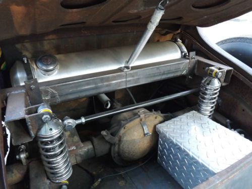 alternator. Brass radiator with electric push fan keeps this Hot Rod Cool. The body is straight and solid overall. Shot in Rustoleum Flat Black. It has been chopped six inches and channeled three inches. Filled roof and molded in visor. Working deck lid and doors that open and shut. The windshield is the only glass in the car, not that glass is needed with the mail slot back window or side windows. The wheel wells and below deck lid show the only signs of rot on the body (see pics) non structural and easily repaired if desired. The interior is bare
