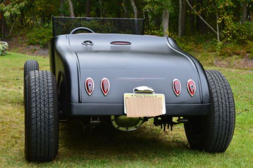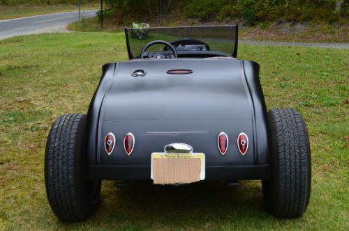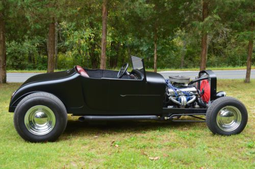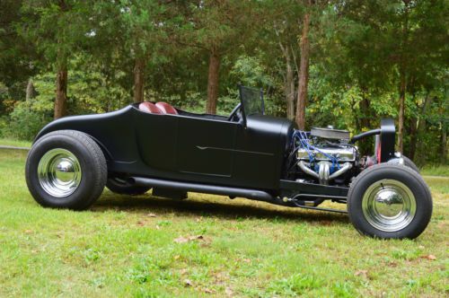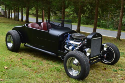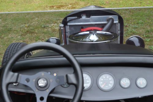 1927 Ford Model T Roadster fiberglass body painted with a flat black finish. It has a SBC 305 with a TH350 transmission that came from a 1980-1984 Chevy car/truck. It has a 10 bolt Chevy rear with a leaf spring suspension and shocks. Spring - behind front suspension with a 4" drop tube axle and hairpin radius rods. It has a 3 row aluminum radiator with an electric fan and ceramic coated hugger headers. VDO gauges - speedometer, rpm , oil, water, and volts. Smoothie rims with Baby moon hubcaps and brand new tires. Four wheel drum brakes. 9.5 gallon spun aluminum gas tank. The body is channeled over the frame but can be dropped even lower with slight modifications. There is a hair - line crack in paint on driver side where the body sits on the frame. IT IS NOT STRUCTURAL. The roadster is a great vehicle to drive and a real head turner. I have driven it as far as 40 miles one way with no issues. I am selling the vehicle locally and I reserve the right to cancel my e-bay posting anytime should I sell it locally. The buyer is responsible for the pick up / delivery / shipment of the vehicle. I will meet with the shipper for transport if needed . |