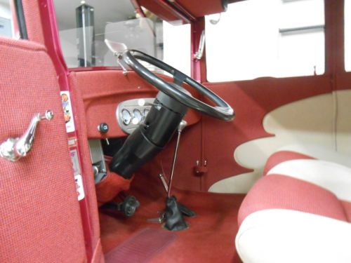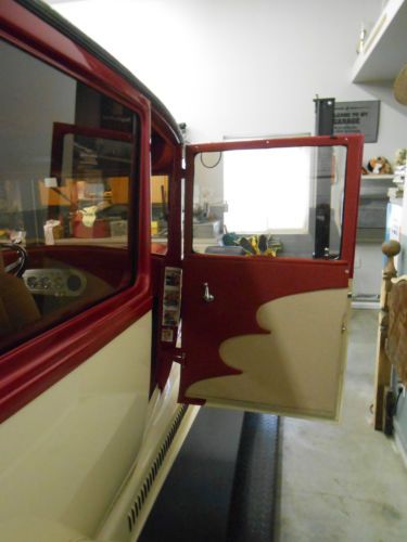 $30,000 1927 Ford Tudor Phantom Sedan, as featured in Street Rodder Magazine 27 T Mr. Roadster chassis, dropped front axle with 4 link and Vega cross steering, hairpin with Carrera coil over shocks and panhard bar on rear suspension, GM 10 bolt rear axle, 3:08 gear ratio, GM disc brakes on front, drum on rear. Walker Cobra 4” radiator with 18” Yearwood shrouded electric fan. 350 chevy engine bored .30 over, ported and port matched heads, Eldebrock RPM intake with Carter 625 cfm AFB carb, Crossfire HEI dist. Cap with Taylor spark plug wires.Pete Jackson Noisy Gear Drive timing set. TRW mild hyd cam, Jet Hot coated block hugger headers, FlowMaster series 40 mufflers With chrome resonator tips, Summit torque converter, Turbo 350 transmission, Carter electric fuel pump, Tanks Inc. dual saddle fuel tanks that fill behind rear license plate. All steel body, 29 A radiator shell shortened 1”, Rootlieb hood, custom handmade hood sides and running boards, fiberglass 29 A front and rear fenders, rears are 3” wider than stock. Bronze tinted windows, GM tilt column, VDO gauges in a custom handmade gauge cluster, Pontiac Fiero bucket seats, Lokar shifter and park brake assy., Sony Xplode AM/FM/CD stereo radio with Pioneer speakers, Dr. K’s wiring harness PPG base coat/ clear coat paint. Colors are 1978 Corvette Frost beige and 1995 Chevy S10 raspberry metallic Cragar Center Star wheels, Grand Am tires. P185/70x14 front, P235/70x15 rear. 7200 miles Always stored indoors, usually with a California Custom Car cover that comes with car. Left rear window has some edge delamination as shown in picture. Left rear tire ( which used to be on the right side ) has a little less tread, did one hell of a burn out!!! Please Call with question or addition photos. Thanks Brian |