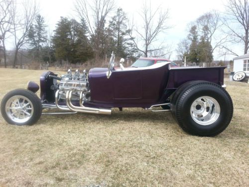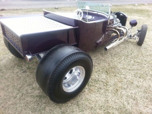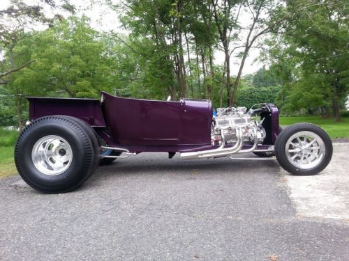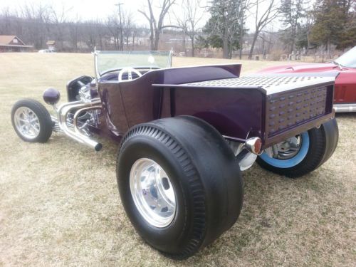 Welcome......You have just found one of the nicest T Hot Rods ever to be offered.This vehicle was custom built from the frame up.Fabricated from 2x4 1/4 inch wall square tubing the frame on this T is extremely strong, non flexing and true...Painted body color, it consists of custom crossmembers and rare front engine mount..It features a complete chrome front suspension from I beam to radius rods.Front brakes are vintage PSI Engineering kit from the 70's with new SuperBeetle calipers.Also featured is a 65 mustang V8 rear with Speedway Motors spring mount kit with new brake shoes, seals, wheel cylinders and all refinished pearl white.An original and perfect Model t grille shell covers the new aluminum radiator.PowerPlant:::A 1959 283ci.Engine resides between the frame rails.It has (zero) road miles having had its initial stat up last week..It has 327 crank with forged TRW11.5-1 compression pistons with Pete Jackson gear drive, DunTov 30/30 cam with solid lifters..Small valve heads Roller rockers, high volume oil pump with electronic ignition and new 3Deuce set up...Stainless steel headers(non muffed).....Vintage Aluminum Blow Proof bellhousing from RCI Industries..Cast Iron GM 4 spd trans(rebuilt)..New driveshaft.Rolling stock on the T are Skinny Firestone 560"s on the fron mounted on new gasser style spoke wheels.The rear are brand new Radir 32" Drag Slicks mounted Black out and on 15x14 VERY RARE Bart fly weight aluminum slot wheels.The winshield is a custom unit with original Ford posts chopped and rechromed to a great shine..The interior is a custom job done in white pearl and light silver carpet.All electronics under seat bottom.The bed is completely steel fab unit with hinged louvered bed cover , stationary tail gate and alloy fuel tank and battery in bed.Front headlamps are 1929 units with Halogen bulbs and also turn signals inside the lenses.The body is fiberglass unit which was customized as needed.The rear cab panel was raised 4 " behind the seat,the floor is finished and painted body color.(No exposed rough fiberglass etc)Corvair steering box etc.This is a great vehicle for someone who does not want your average cookie cutter t bucket..Fit and finish is great,.......Color is Lambo Ophelia Violete Orchid. Please keep questions through Ebay to a minimum...I can be reached on my cell at 973-222-7265......Ask for Jim...Local buyers are encouraged to come inspect in person..This vehicle has not been presented at any shows at this time but is looking to "brake out" this spring.Buyer is responsible for $1,000.00 down payment , non refundable within 2 days of auction end through pay pal if you wish..Cash in person if picked up by new buyer..Money transfer for long range purchase requested.No personal checks,...I will also take a deposit via Credit Card of your choice..Shipping will be the sole responsibility of the winning bidder.I will store the vehicle under lock and key for 2 weeks MAX after sale..From then a Storage fee off $20.00 per day will be applied.....until picked up from my address..No Scams,...No Trades,.....This is a custom constructed vehicle.Titling and Registration are the responsibility of the new buyer and respective state they live in .I Can provide Bill of Sale, 1926 Ford model T title included.Vehicle for sale locally so I reserve right to end auction early.We have the ability to build a top for the car at an additional cost at new owners request, if needed