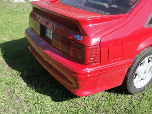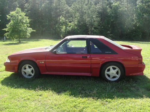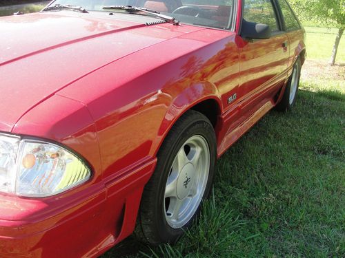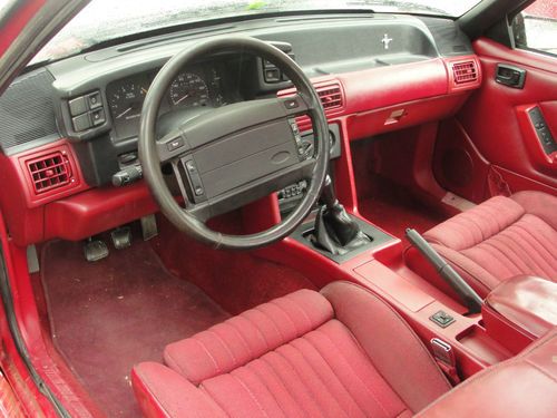 This is a 1991 Mustang GT red with red and gray interior 5spd. The car has been painted about 3 months factory color. Things that have been done to the car. The car has all new suspension , new tires , and it was lined up after new suspension. When the car was painted some new trim was put on the car. The interior was cleaned and some new part like door handles. The car has a new radiator and msd distributor and wires . This is a really nice car runs and drives great its all original car hard to find cars like this. The miles on odometer is showing 132,000 but iam not sure of miles the car runs like its got 32,000 miles!