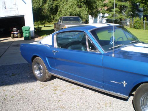 1965 Fastback Mustang. I have owned this car for over 30 years and am the 3rd owner. I purchased this car with 37,500 miles and now it has 44,000 miles. I do not drive it very much and now have other projects waiting. the fenders and quarters have been replaced. Original engine, new transmission in 1985. Floors have been replaced, original doors. All new chrome except for around windows where the car has the original glass. Headliner is original. Cassette radio is from 80's. I have new wheel covers to replace the older ones. Brand new disc brakes, tires and tune up. I have original hubcaps and original radio if needed.