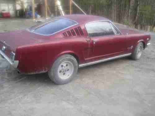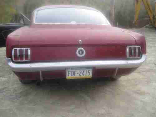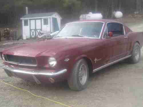 This is a 1965 Mustang Fastback. 289 4V. 4 speed. Have not drove this car in 2 years due to paint peeling. Have started and drove but not put on the road. The pictures are as I drove it out of the barn. It has not been washed or cleaned. Body is in good shape. Frame is good. Needs a drivers side front floor pan. The front end is lowered 1 inch. 600 lb springs. All new control arms and bushings. KYB racing shocks up front. The car runs great. May just need a tune up from sitting. I drove it tonight about 5 miles, did some burn outs and had it up to 90. It runs good. With a little work car can go on the road now and be a driver. The paint was done in 1987. It has 32 coats of paint. See back of truck for candied color. The car was driven all summer for many years until our daughter was born. Haven't had the time or money to repaint. 289 has been upgraded with new cam, lifters, and newer 302 heads. Had Cyclone headers and dual exhaust. Clutch is good and tight. 8" open rear. 14" disc brakes up front and drums in rear. Chrome has light surface rust and should clean up decent for a driver. Interior carpet is dirty. Drivers seat has stiching worn. Passenger seat is good. Rear fold down seat is in good shape. Bid to buy this car. If it gets close to reserve I will sell. No text messages. Pls call 607-760-3512 with any questions or email. Once again no text messages. This car does not need alot of work to be fully restored. Car runs and drives. Drive this summer - restore this fall. Comes with 2 new rear tires. After tonight - I burned them up :)