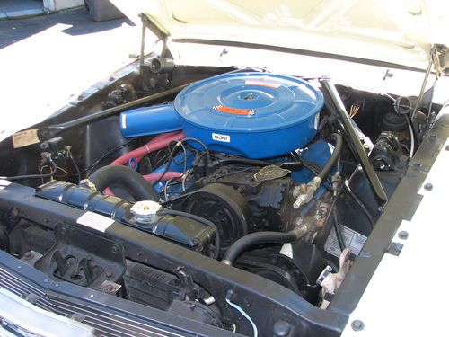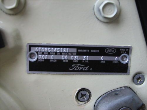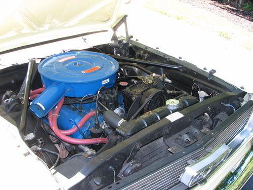 This car has the majority of it's original sheetmetal, the passenger door is not original and the drivers door has had a lower skin repair. Other than that I believe the rest of the sheetmetal and undercarriage to be all ford. The car is extremely solid. The floorpans, frame rails etc all rust free and that means no previous rust repairs. There is a small rust whole in the passenger rear wheel well. All the inner fenders are original also. The under side has not been restored and as such shows the dirt of 40 plus years. The paint is an older enamel finish that still shows well but has multiple minor nicks and scratches. There are paint adhesion problems in the door jamb hinge area and also under the hood on the lips were the fenders bolt are. Looks like improper prep in those areas. There is a crease in the left front fender behind the extension ear of the front bumper and a small ding in the passenger door. The rear valance panel is not a good paint match to the rest of the car. It is a few shades off, it was added when the duals were put on. Most all of the chrome and stainless shows very well, I have been replacing small things as I went along. The doors open and close as they should.