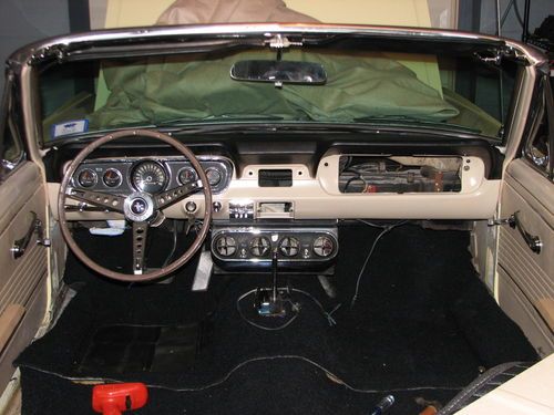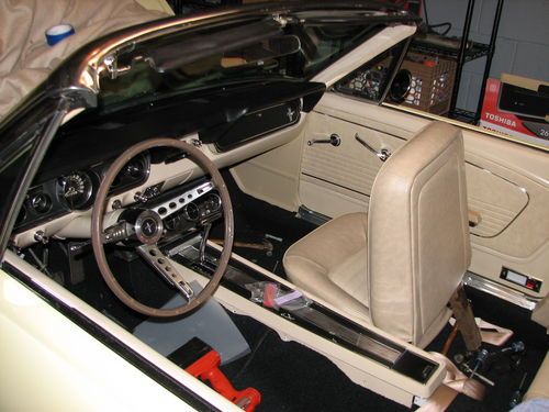 When I purchased the car it had black pony interior. The door tag decoded it as parchment with black accents and I have restored it as such and it presnts very nicely indeed. The car originally had a manual top, I purchased a used complete power setup from another Mustang and installed it completely using all Ford parts. The top is not new but it is in excellent shape with no exterior damage. Everything works electrically with the car.