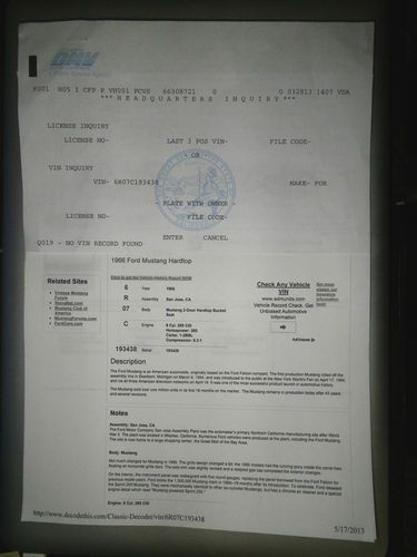 - Attached VIN reports shows the car was manufactured in San Jose and the DMV shows "no record of VIN".