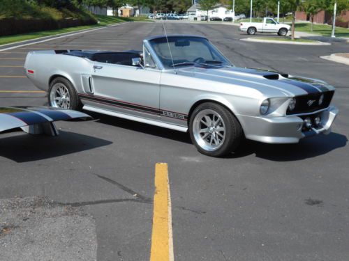 1968 Mustang Shelby Eleanor GT350 Convertible Roadster with Removable Fastback RoofMy name is John. Please call me at 801-680-8447 with any questionsThis is a beautifully restored example of 1968 Mustang It runs great, drives great, looks great, and the attention it gets is extreme! No Disappointments: This Mustang is a great investment and a fun car to drive and enjoy. From the engine compartment to the trunk and everywhere in between, this is a clean car. The following will be a description of each area of the car, being as in-depth and accurate as possible. Please keep in mind that this is a classic car that is over 46 years old, and although I will describe everything as best I can, some small items may have been overlooked. BODY:As you can see from the photos, this Mustang has an absolute gorgeous body. The car was professionally painted in the silver metallic that you see now. A high-quality prep and application was professionally performed. The underside is just as clean, with great frame rails, strong torque boxes and undercarriage. The panels on this car show great fit and are straight. The car has no soft top. The removable roof comes off in 2 minutes for that roadster look. INTERIOR: