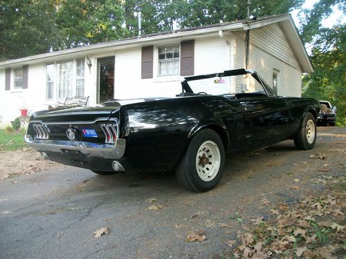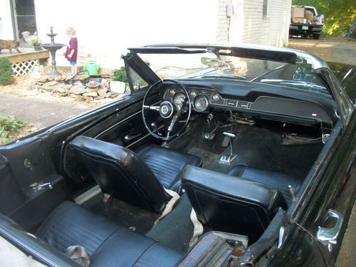 Up for sale is a 1967 ford mustang convertible.This is as original as they come.This car is a daily driver that can be driven anywhere.The ac was working before the compressor gave out.The car has power steering and power kelsy heys 4 piston disk brakes on front.The car has driver quality interior in it and needs a paint job.The car was bumped a few years ago and it bent the hood and broke the headlight bezel but the car will come with a good gt hood and bezel.someone in time past repaired the floor pans so they are good but someone building a show car would probably want to redo them the rear quarters were patched also and have bubbles coming back through in lower corners.It also has bubbles coming through on the drivers door on the front lower corner the inside of the trunk is in great shape and front and rear frame rails are good.The top on the car needs replaced its tore in places and there is another rear window in the trunk as well as the radio bezel and the tops cylinders someone pulled them off for some reason the pump runs fine. everything on this ride works but the fuel gage and top and horn.The engine and trans is top notch it has no knocks or rattles runs cool and dosent smoke the trans works great also .over all this will make someone a great little car I just bought this lil ride 2 days ago and ive drove the wheels off it only thing ive noticed while driving it was that one of tires has a broken belt front tire bounces a little.i think ive covered everything and hope I described it ok good luck and god bless.