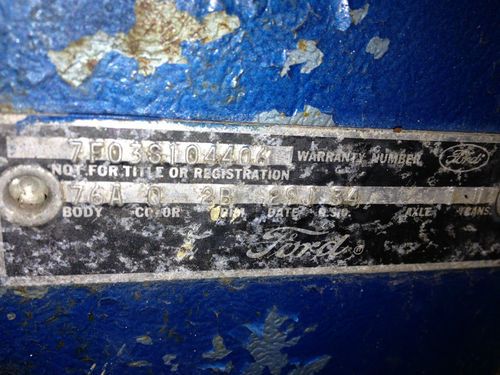 IT HAS A CLEAR TITLE. THE VIN IS 7F03S104406. THE HUB CAPS LOOK DECENT. THE BODY AND PAINT IS ROUGH. I THINK THE GLASS IS GOOD. THE UNDERCARRIAGE IS VERY VERY RUSTY. THE SHOCK TOWERS ARE DECENT. THE CAR NEEDS A LOT OF TLC BUT IS DEFINATELY RESTORABLE. I HAVE A CLEAR TITLE.