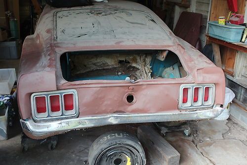 1970 Mustang fastback for restoration or parts; car needs extensive rust repair including floor pans, torque boxes, passenger side front apron (under battery), passenger rear quarter, outer wheel well & dropoff, rear tail panel & support. Driver side rear quarter/wheel well is solid, but has multiple dents in quarter. Comes with passenger door, hood, front fenders, couple of high back buckets and parts of a fold down rear seat that came with another car I purchased years ago. Rear glass is good, windshield is broken. Right front suspension has been removed as the lug nut studs were sheared off when I purchased the car. Other three wheels roll freely. I do not have a title as NY is a non-title state prior to 1973, listed as salvage just to get the listing started. Am trying to purchase an M code 70 Mach locally that is extremely rusty & stripped. Hopefully that 2nd car will be available for sale before this listing ends.
