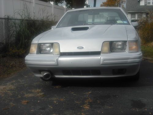 the buyer of this car sould know cars and computers-this car has been off the road since 1992-it has been kept inside- ok heres the list- rebuilt 2.3 -o- ringed -forged 30 over pistons flat tops-5.7 rods-copper head gasket no leaks-big valve head rebuilt-roller-edel brock upper- ported lower-facing front bet you havnt seen -75mm throttle body from 1995 5.0- mega sqirt 2 ecm- with wide band-lap top-big ebay turbo 60-1 -3 inch down pipe-big front mount inter cooler 3 inch pipe-be cool radiator - black majic fans-alcohol injection-crank breather and valve cover-blow off valve-strut brace- camber plates-15 to 1 manual river rack- msd-line lock-4 wheel power disc-new rotors and brakes and brake lines- 2 new fuel pumps -replced gas tank-rebuit t5 trani-center force clutch-all new cables -adjusters-short shifter-new 4 seires rear 411 gears-upper and lower control arms-chassy conectors-battery in back of hatch-power inverter for lap top-there is no grease or caked mud or dirt on the car-clean and paint under the mint rust free svo hood -painted with rust bullet all so under car-new head liner-2010 mustang rims 17s with new kumo tires-car has a 3g alternater-serp.belt-aluminum water pump-timing gears-green back gator belt-all lights work-horn works- radio works-door locks work- windows work-white face gauge-boost control-front leather seats no rips no crack in dash-new carpet-accel coil-GN turbo sheild-the car needs some finishing body work and paint -all body lines straight- the car is 95 persent rust free 2 small spots on the floor- the car is being sold in as is condition -it has not been road tested - i am sure i missed things- so please ask-