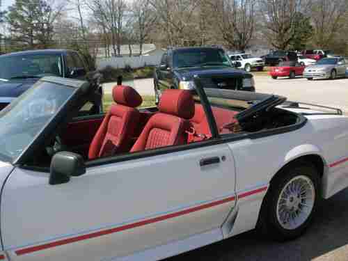 1988 FORD MUSTANG GT 5.0 HIGH OUTPUT. HAS BLACK CONVEERTIBLE TOP RED INTERIOR AND OUTSIDE IS WHITE. EXCELLENT CONDITION. COLD AC. POWER WINDOWS AND DOOR LOCKS. BUSINESS NUMBER IS 731-642-5300.