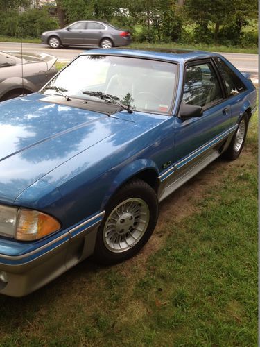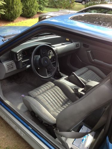 This is a fine example of a true survivor Mustang Gt. For the year this car is in excellent condition. It is all original and needs very little to be mint. It has several dings from my wife parking under a tree and it has 4 or 5 tiny dings from acorns. The drivers side tail light has a small hole from my sons bike and some paint chaiffing from the bra on the front bumper. It has under 17.000 original miles and the interior is in new condition. I took this car to a guy that restores Fox Body Mustangs and he quoted me 1000 to 1500 to put this old lady back in showroom condition. Please come and check out before bidding. I have been to many car shows and have yet to find one in this condition. Happy Bidding