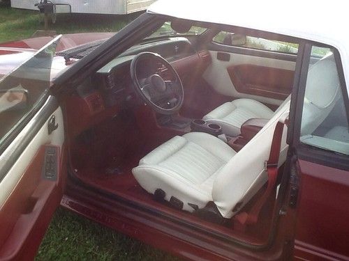 I am selling my wife's extreamly clean mustang convertible this is a very nice driver. The automatic trans has been rebuilt and shifts smooth and perfect every time. The top is brand new as well as the white leather seats are perfect and the car has been reprinted and is very nice. The only problem is the rear stock exhaust is very rusty and the passenger side is been taken off I just can't decide to put a stock exhaust on or a louder system that's why I haven't had that done.