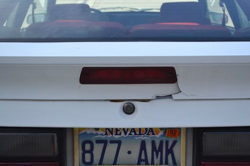 This vehicle runs and drives well, but needs work. As noted in the photos, there is damage on the drivers door, the left front fender, the front of the hood, the rear spoiler, the front parking light and head light lenses. The passenger door handle needs to be replaced but can be opened from the inside. The A/C needs to be recharged and the car needs new shocks. The AM/FM radio does not work. On the bright side, I have a brand new unopened Sony AM/FM radio/cassette which is included in the purchase price that will fit the vehicle. The tail lamp lenses are only 2 years old & the interior is in good condition. The power windows and power door locks operate.