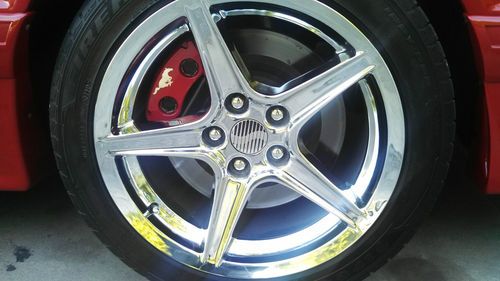 Chassis: five lug conversion with complete Bullit braking system, Goodridge braided brake hoses, Manual proportioning valve, Emergency brake still works!! Cobra master cylinder and booster.Rear axle Yukon axles 3.73 ford racing gears . Maximum motorsport welded subframe connectors ,Maximum motorsports caster/camber plates . Tokiko struts with adjustable coil overs (front) tokiko rear shocks and springs Front ford racing lower control arms (new) Rear BBK upper and lower boxed control arms . New quick ratio power steering rack with flaming river steering coupler . Tires/wheels: Front 245/45/17 firestone firehawk on saleen 5 spoke wheels. Rear 275/40/17 firestone Firehawk on Saleen 5 spoke wheels BRAND NEW