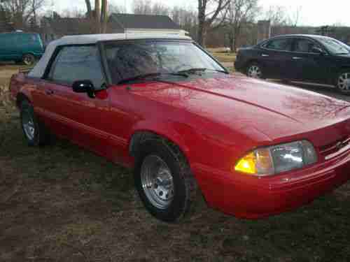 1992 Mustang 4cyl red on red white top very nice car. good condition good tires runs like a champ.