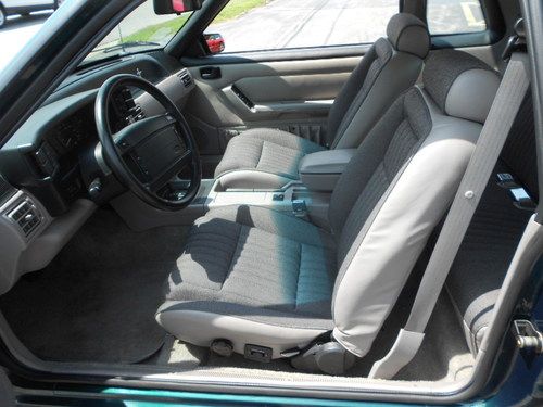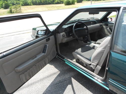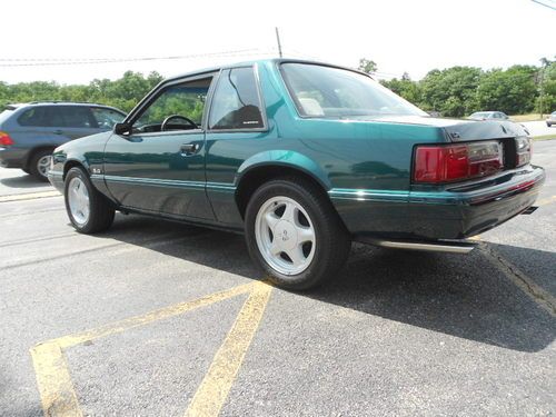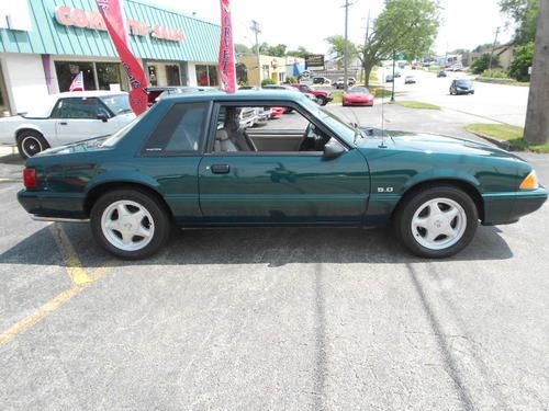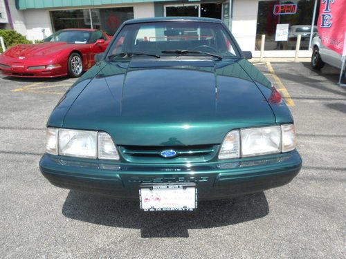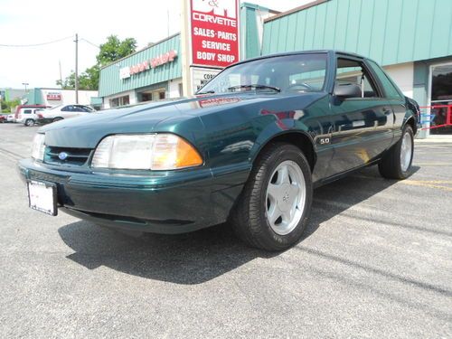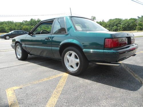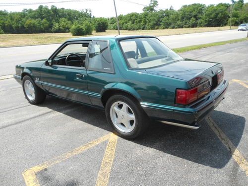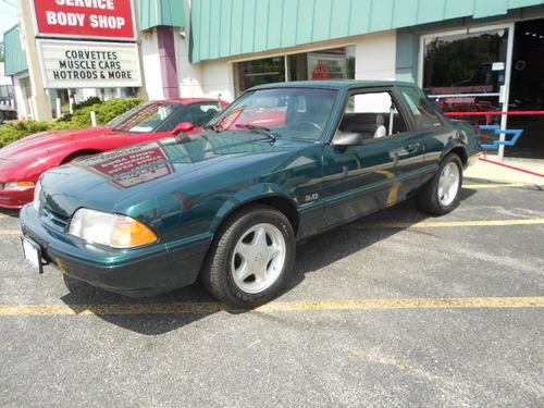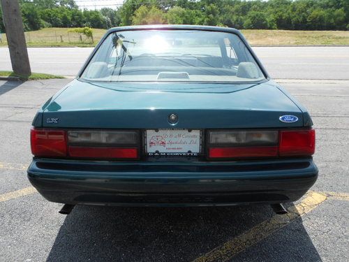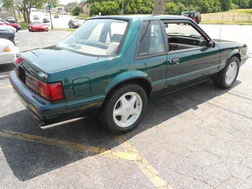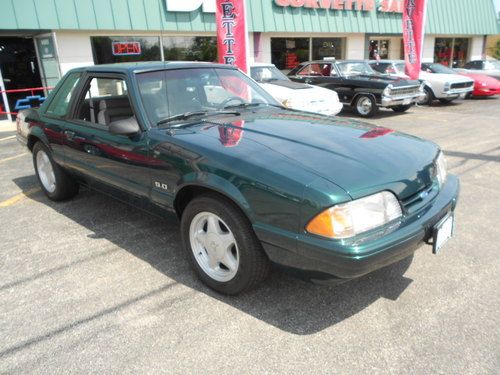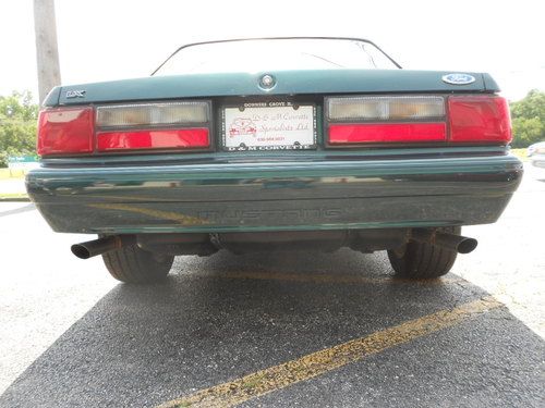 1992 FORD MUSTANF LX 5.0, THIS IS A 1 OWNER CAR AND IS 1 OF 843 DARK EMERALD GREEN CARS PRODUCED,AND POSSIBLY THE ONLY LX 5.0 THAT IS THIS COLOR WITH THIS OPTION COMBINATION?? THIS CAR WAS STORED RIGHT AND TAKEN CARE OF.IT LOOKS AND DRIVES EXCELLENT,WE EVEN HAVE THE ORIGINAL WINDOW STICKER AND WARRANTY BOOK TO GO WITH THE CAR,AND IT STILL RIDES ON ITS ORIGINAL GOODYEAR EAGLE TIRES!! IT HAS PW.PL.EQ STEREO.AC(THAT WORKS),CRUISE, THIS IS A CHANCE TO OWN A FOX BODY MUSTANG AND EVEN A RARE NOTCHBACK MODEL THAT WASNT BEAT OR ABUSED. THE ONLY FAULT ON THE CAR IS A SCRATCH ON THE TRUNK LID THAT HAS BEEN TOUCHED UP,ITS HARD TO SEE AND IS IN THE PICS,THIS CAR HAS ZERO!!! RUST!!! THE UNDERSIDE LOOKS AS CLEASN AS THE TOP..THIS CAR IS READ YTO BE SHOWN OR DIVEN.. www.dmcorvette.com 630 968 0031