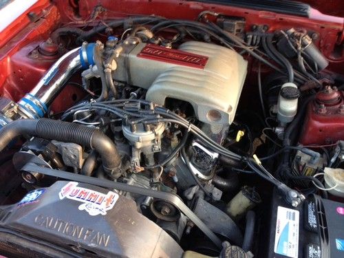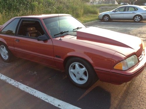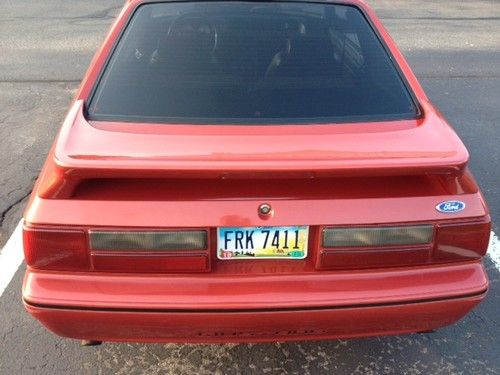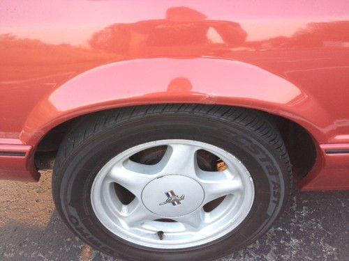 1992 Mustang LX 5.0. Auto, A very clean driver!! Red with black interior, Car is not a show car has some dents and dings (its 21 years old). Light surface rust on RR wheel opening as seen in pictures.Aftermarket fiberglass Cowl hood,Pony wheels,and tinted windows!!Overall shows very well and turns heads everywhere!! Interior in overall nice shape has some normal wear and tear. Has a cracked windshield and door locks do not work. Car has had Ac and heat eliminated. Tons of money have been invested in this car here is the long list of it!