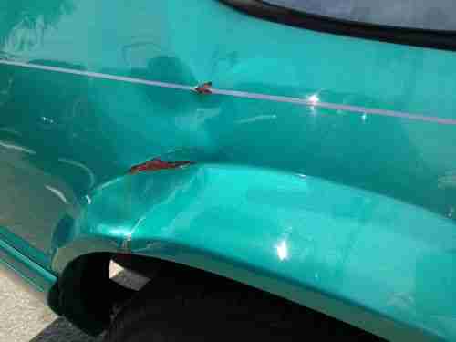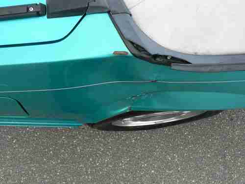 The undercarriage of the car is in great condition with no rust. The factory pinch welds still look like new and are not flattened from someone jacking the car up incorrectly. The passenger rear quarter panel was dented due to a tree branch that fell on it. It looks to be an easy fix for someone mechanically inclined to pop a dent out and patch it,or simply drive it the way it is. This does not affect the drive ability of the car in any way.