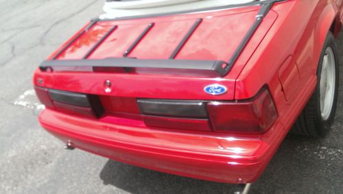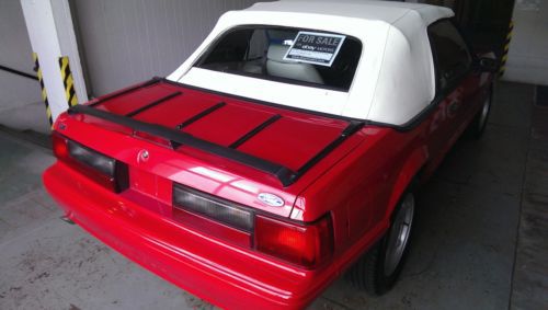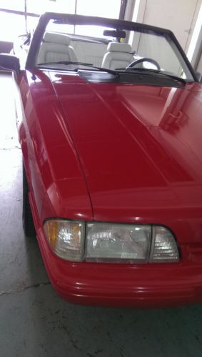 This is a gorgeous, compact, powerfully rumbling, smooth sailing beast of a car. Classic red convertible with white/cream leather interior. Power everything. The legendary 5.0 HO SEFI Ford engine purrs nicely at slow speeds around town but kicks in hard when you need all 8 cylinders.