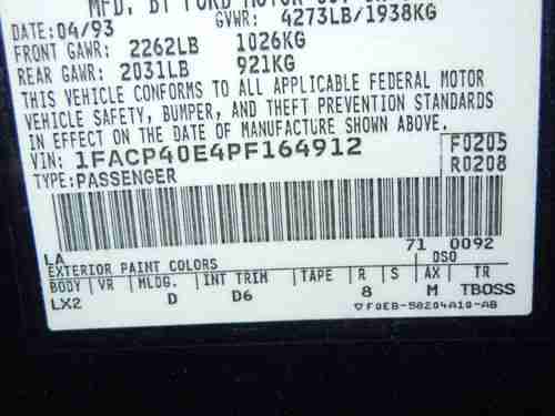 1993 Mustang SSP Police vehicle. This car was owned by the Beverly Hills California Police Department. It is my understanding this SSP was used as a Detective car at BHPD. A color copy of the City Of Beverly Hills Title will come with the car and is attached as a photo for viewing. The car currently has 63,510 original miles. This Mustang SSP was sold by Beverly Hills in 2005 with 60,022 miles and has only been driven a couple thousand miles since. The Mustang has been owned by me for the past year and has been stored inside covered. I have a clean clear title in my name in my possession. This car was used as a police car, thus it has numerous scratches and dings on it. I have tried to show the condition of the car in the photos. However, consider this is a used 20 year old car and is not in show condition (although it has been taken to car shows and parades). Buck tags are in place as are all VIN tags. There is non OEM window tint on the driver/passenger/quarter windows and rear glass. The driver quarter tint is coming loose. There are scratches on the tint on the other windows. The car starts runs and drives well. The tires are not the correct size for the car. It has 205 70 15 on it and should have 225 60 15. The speedometer shows a couple MPH off due to the tires. This car is equipped with emergency equipment for shows and parades. It has wig-wag lights front and back, a red flip down visor light, rear deck blue/yellow flasher and a siren. The car can not be driven on the street with the equipment in working order. I will not ship the car with the blue lens on the rear deck light unless the purchaser provides Law Enforcement Credentials. The transmission in the Mustang was rebuilt in 2012 by Sam's Transmission shop in Salem, Oregon. . It is very strong and has a shift kit. The Mustang had a new heater core from Ford installed in 2012. The Mustang was last run through emissions in 2009 in California and passed. I have no reason to believe it would not pass now, however I am not in an emission area. I have set what I believe is a very reasonable reserve for this car in this economy. There are a lot of photos online of this car at shows and in parades. Google Beverly Hills Police Mustang and you should find them. This Mustang is stored in my secure shop. It is available for inspection by appointment.