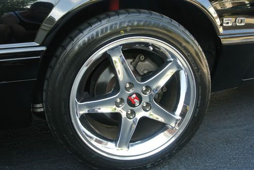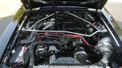 This is one strong Notchback that has had all the work done and is ready to be enjoyed by a new owner. My loss is your gain-I've invested over 12k myself within the last year and their has been another 20k worth done to it. The car is in excellent condition inside and out. The inside is fitted with black leather-no rips or tears. Roll bars welded to the subframe. The only imperfection I can see is where the aftermarket Cervini hood hit the latch too hard when closed and lightly spider webbed-see video. Head lights were replaced with smoked euro lenses. Tires are brand new 17" Bridgestone Potenza Sports-RE760. Dual bullet sport mirrors. Cobra R five spoke chrome 17" wheels (very rare and no rim rash), five lug conversion.