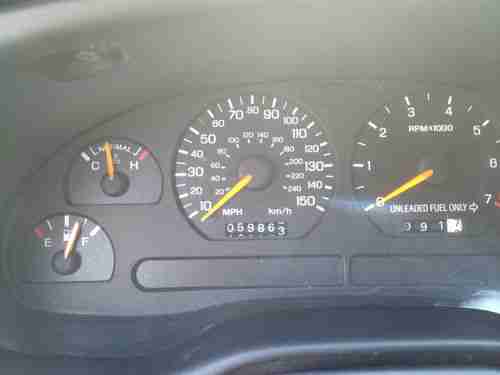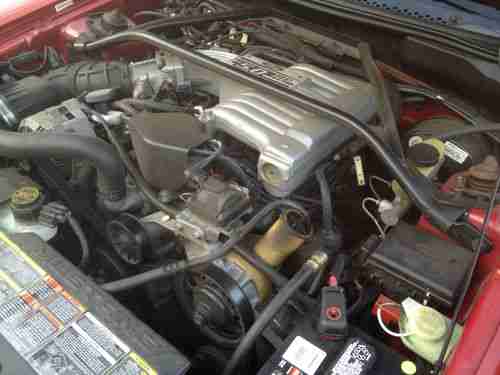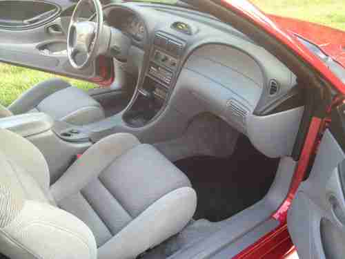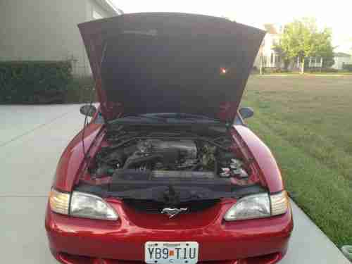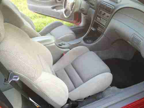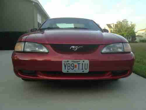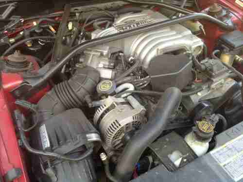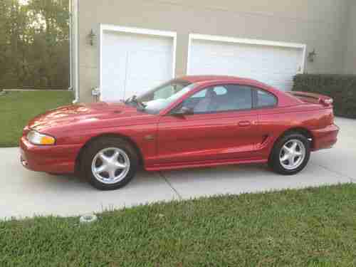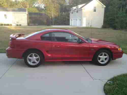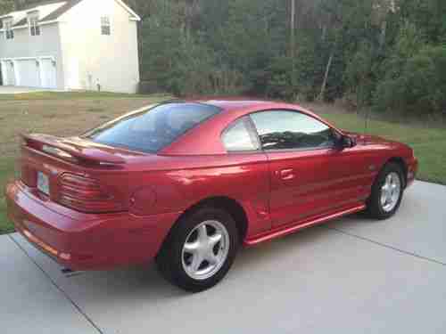 Ford celebrated the 30th anniversary of Americas favorite ponycar in 1994 with the release of an all-new Mustang. The 94 Mustang had a lot to live up to; it had to be better than the six million Mustangs built before it, while c rying on the styling cues and performance flavor that have spawned a nation of Mustang lovers. With a limited budget of $700 million, engineers built the new car on an improved version of the code-named Fox chassis used for the 79-93 Mustang. A familiar powerplant, the ever-popular 5.0-liter V-8, is put to work in this GT version that produces 215 horsepower at 4200 and 285 pound-feet of torque at 3500. Its 0-60-mph performance of 6.7 seconds is still pretty quick. The handling was much improved over the previous generation car thanks to progressive-rate springs, longer control arms, new spindles, anti-roll bars, and chassis stiffening. The resulting ride is quite comfortable, while the stock GT suspension is capable of skidpad and slalom numbers of 0.87 g and 66.3 mph. The Mustangs dual-cockpit wraparound dash is clearly an evolution of that seen in the Mach III show car. This excellent example is finished in Laser Red Metallic with a Opal Grey cloth interior and it has less than 60K miles on the odometer. If youre looking for a defining moment in Mustang history dont miss this one.