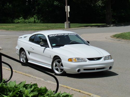 1995 mustang cobra R , #62 , 1 of 250 made, all documents , Originally was Bob Bondurant s personal car (NOT a track car) , All oem except for Flowmaster cat back. BRAND NEW FUEL CELL(common problem with all three mustang cobra R's is the fuel cell leaks....cost up to $2300 to replace) . This car is in immaculate rust free condition .All vin. tags in place and paint is original. Tires are basically new ...Also this car has never been raced or abused . Garaged in Stoughton Mass. Any questions or pictures needed please don't hesitate to ask . 7-16-2002 the miles where incorrectly noted (rounded off) . PLEASE SERIOUS BIDDERS ONLY ...Thank you