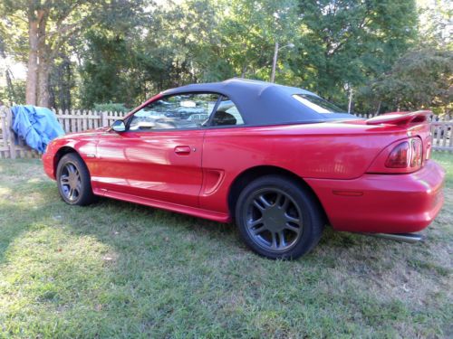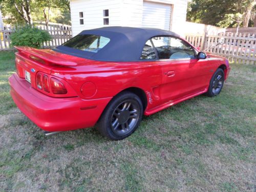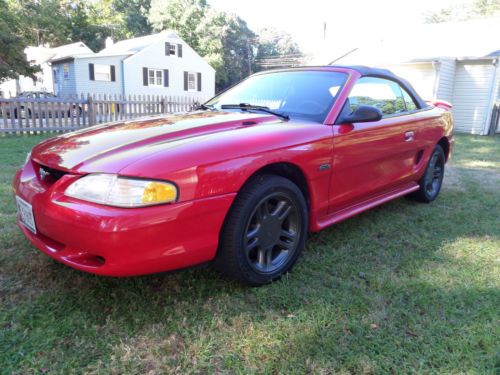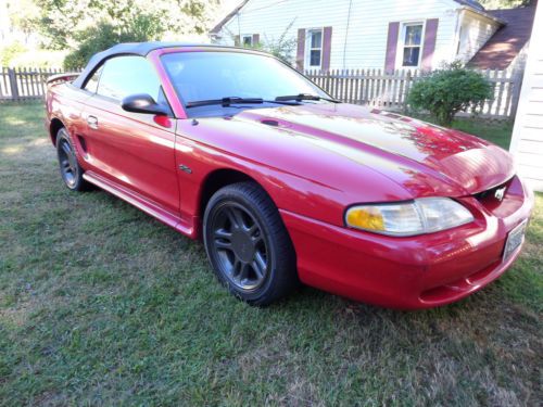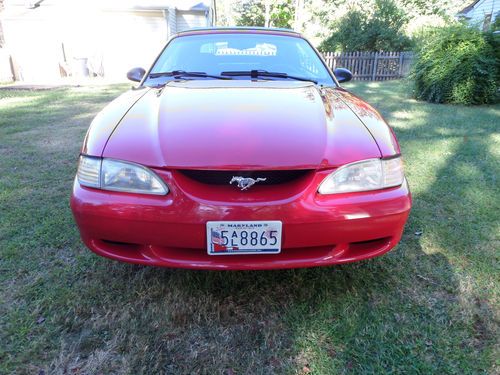 Selling my 1996 Mustang GT Convertable with 96000 miles. New top. New tires. Everything works and is in good shape. There is a small dent on the R/R quarter panel. The interior has normal wear with some cracking on the leather seats. Motor was just tuned up with plugs, wires, rad. flush, oil change and filters. Motor runs quiet and smooth. Automatic trans. shifts and performs great. This is a turn key car that a female grad has been driving. The car is safe and dependable. I will state inspect. The car steers and brakes perfect. I have replaced the brakes and rotors. A/C blows very cold. The GT has plenty of power when you need it. Fun to drive. For sale locally so please feel free to call me with any questions or concerns. Low reserve. I am a mechanic by trade and I dont mind cutting somebody a good deal but will not give it away. Thanks. Dave at 301-674-8426.