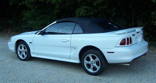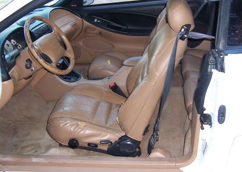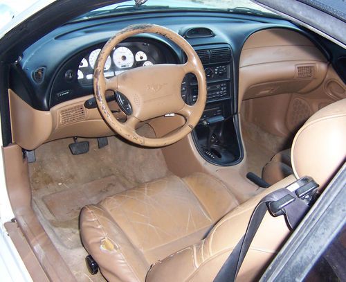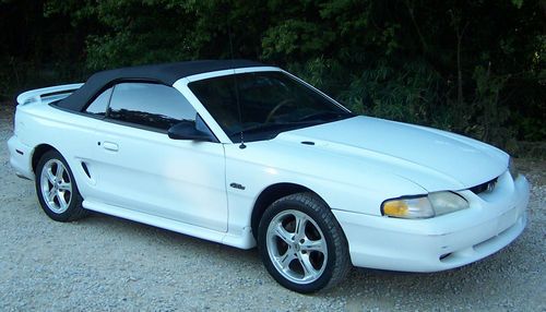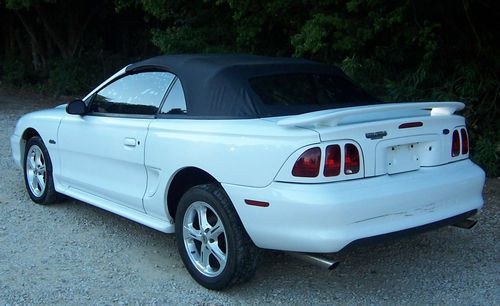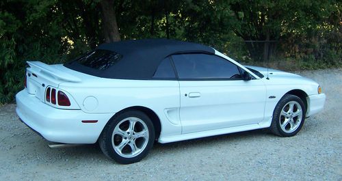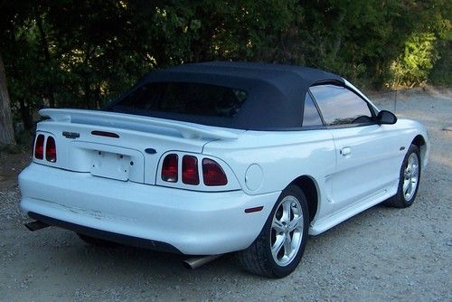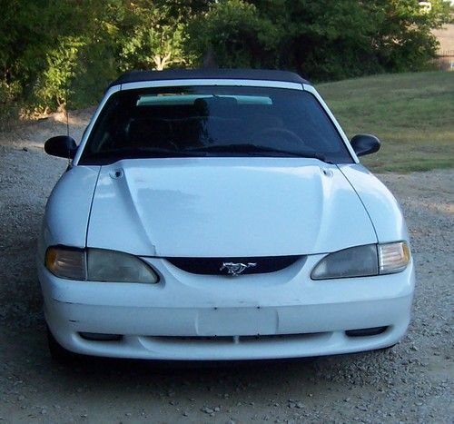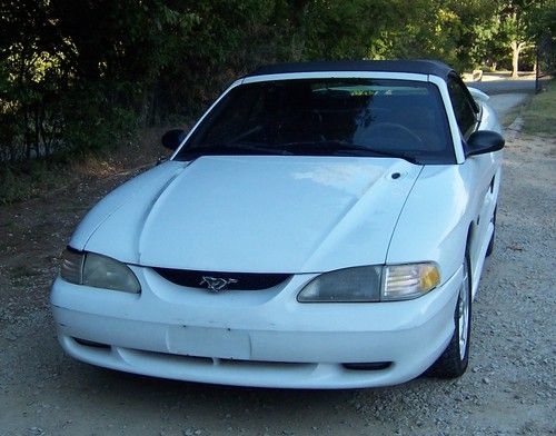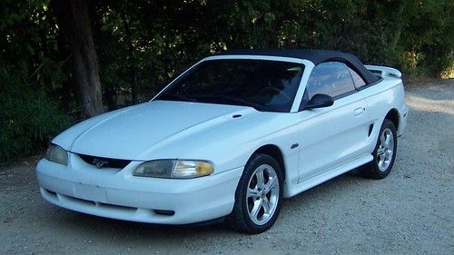 1996 FORD MUSTANG GT CONVERTIBLE - RUST FREE NORTH TEXAS CAR SINCE NEW - AUTOMATIC - ICE COLD AIR - POWER WINDOWS - POWER DOOR LOCKS - CRUISE CONTROL - TILT WHEEL - ALLOY WHEELS - FRONT BUCKET SEATS WITH CENTER CONSOLE - MACH STEREO WITH AM/FM CD AND CASSETTE - TINTED WINDOWS - REAR WINDOW DEFOGGER - POWER HEATED REAR VIEW MIRRORS - BRAND NEW TOP INSTALLED 1 MONTH AGO - THIS MUSTANG RUNS AND DRIVES PERFECT - THE ENGINE RUNS GREAT AND THE TRANSMISSION SHIFTS JUST LIKE IT IS SUPPOSED TO - THE THINGS THAT I KNOW IT NEEDS....BOTH FRONT SEATS HAVE SOME WORN SPOTS AND HOLES (PLEASE SEE PICTURES)...THE DRIVERS DOOR NEEDS AN OUTSIDE DOOR LOCK - THE TOP DOES NOT WORK - THERE ARE THE NORMAL SIGNS OF WEAR AND TEAR BUT NOT BAD - EVERYTHING ELSE WORKS GREAT AND IT RUNS AND DRIVES GREAT - THIS CAR IS NOT NEW AND NOT SOLD AS NEW BUT NOT BAD EITHER AND PRICED WITH A VERY LOW RESERVE TO SELL FAST......LOOK AT PICTURES CLOSELY AND BID ACCORDINGLY.