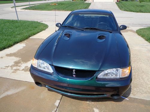 this is a rare 1996 mustang cobra mystic with 56,500 miles on it.it is the california svt model they only made 2000 in the chameleon color it changes from burgundy to rootbeer to yellow to green to blue depending on the sunlight. as previously noted it was in a minor accident in the snow going 15 mph the passenger side was scraped and the door was misaligned but has been repaired to showroom condition.as stated in car report vehicle was towed because it would not drive in snow without getting stuck so it was towed to paint shop.i do not see a single scratch on this car.paint is excellent no fading...very clean inside and out..this car won an award at recent car show .mechanically sound please email cobramike1@hotmail.com. mileage is accurate as of today. mileage on car will vary due to this being my daily driver until end of august or when it sells.i drive it approx.24 miles a day 4 days a week. car is for sale locally and i reserve the right to end the auction early if i desire. hurry ,do not miss out on a rare collector car .this car will sell. happy bidding.mike for questions 360 553 2689