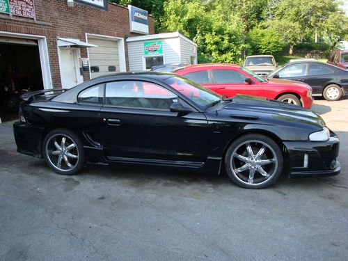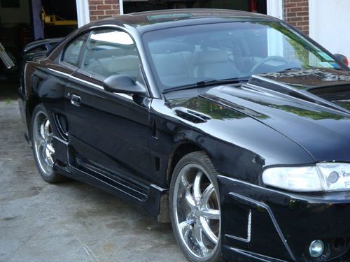 97 Mustang with 68,261 miles on a 4.6 engine.....5 speed manual transmission....20" chrome aftermarket rims.....aftermarket hood...bodykit....fenders....radio.... altezza tail lights.....projection headlights....gray leather interior...garage kept.....stored winters.....runs and drives great.....sounds great with the GT rumble.....no rust on car anywhere....car is for sale locally so will end auction early if it sells....feel free to ask any questions.....im the 3rd owner.....must be payed for within 5 days of auction end....buyer has to transport vehicle at own expense or can be driven... will deliver for fee