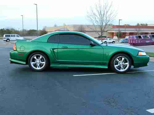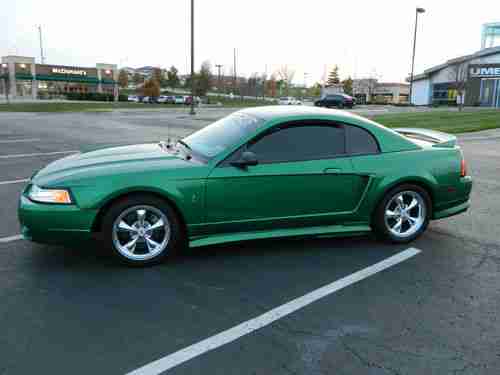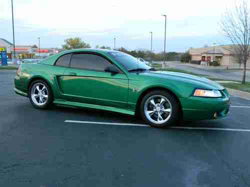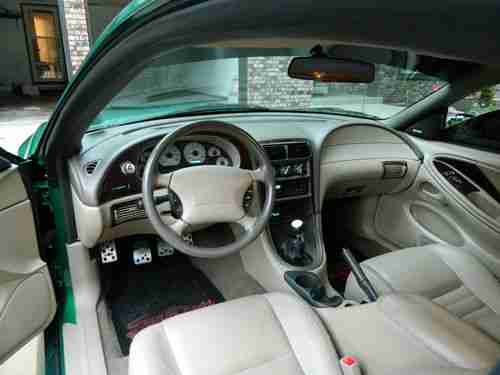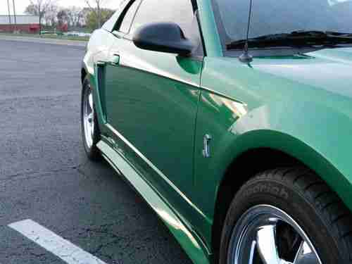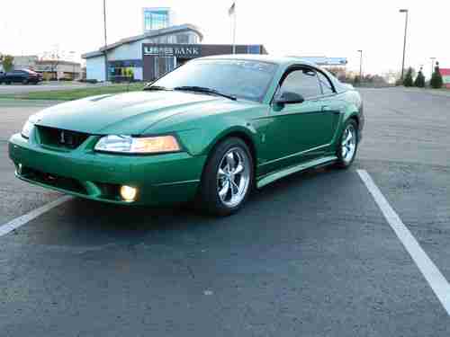 For sale is my 1999 svt cobra dubbed "The Green Machine" it has very low miles 37,xxx original miles!! The green machine has always been a babied car always garaged and well taken care of. The previous owner almost never drove the car in the nine years he owned it. I have treated the car like a baby giving it mobile 1 oil changes and washing out the k&n filter every 3k miles since ive owned it. The car turns heads everywhere and gets tons of compliments the green is a color that you have to see in person pictures don't do it justice. The car has no door dings or dings of any kind there are 3 small scratches on the whole car not bad for a 99. If you are interested in seeing them i can send u a pic just ask. Any body shop can fix for less than 200 bucks they just dont bother me and i am not interested in a perfect car i like to drive and not worry about a little imperfection. Installed brand new tires 1-12-13!!!