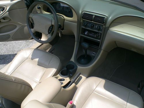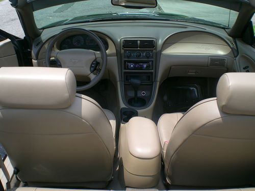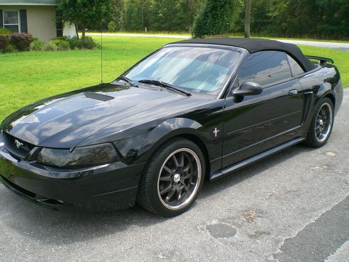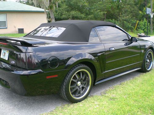 This Mustang has been restored and is in pristine condition, Every area of this car has been gone thru and restored or replaced. It has every available option and is perfect in every way. I will try to list some of the things that have been done however I'm sure I will forget a few. Starting with the exterior the entire car was disassembled, stripped and repainted the factory color black less than a year ago, the convertible top and headliner was replaced with a cloth one 5 months ago, The wheels are 18" Konig's with Nitto high performance staggered tires, It is lowered with Eibach sport tuned springs, The grill is a factory Mach 1 running horse, The headlights and taillights have smoked covers to enhance the look and protect the lights that have also been replaced with new ones. The interior is pristine with brand new factory carpet, floor mats. The leather seats are perfect with no rips, tears or blemishes. The audio system has 2 10" Kicker subwoofer's with 2 high powered Pioneer amplifiers and a Pioneer CD radio. It also has a remote start alarm system with perimeter motion detection while the top is down. The engine is the the 3.8L V6 and runs perfectly with just over 100k miles the automatic transmission was replaced along with a complete overhaul of the rear end. I have an extensive file of receipts and notes on the car since I purchased it in 06/2009 I have well over 18k in this car and you would be hard pressed to find another in this condition. I am not desperate to sell and it is not driven, It sits covered in my garage on a battery tender and can continue to sit until someone can appreciate the work that has been done to it. Clear Florida title in hand. Any questions I can be reached at 352-680-0201