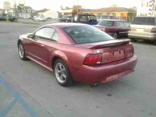 Here is a nice 2000 Mustang GT. The good thing about this car is the drivetrain. It is all original and stock, with the exception of the mufflers. I think they are "Flowmasters". Most of the time you can not find an older Mustang GT that has not been modified . The 4.6 V-8 runs good and the 5 speed manual transmission shifts smooth. The clutch feels good, you don't feel any chatter and it releases very smooth.