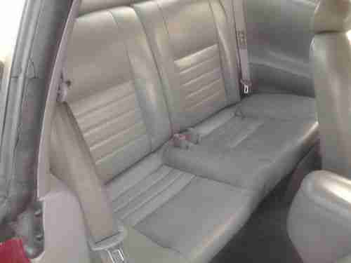 The gray leather interior is in fair shape, except for the driver's seat. You can see the tears in the bottom cushion in the picture, as well as the wear on the seat bolster. The rest of the interior is pretty decent. This car is fairly well equipped. With the Mach 460 AM/FM/CD/Tape, Premium Alloy Wheels.