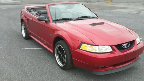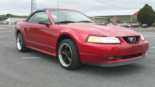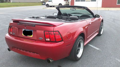 I am helping a buddy out by listing his 2000 Mustang GT convertible for him. He isn't computer savvy so I said I would give him a hand. Now I can tell you that he is the kind of person you would want to purchase a car from, he took care of it. Actually he is a mechanic and a Service Manager at an automobile dealership and this was his wife's car. This Mustang is all stock except for the exhaust and stereo. This Mustang WAS NOT BEATEN, WAS NOT RACED, WAS NOT ABUSED. There are a few faded spots in the paint and a few little chips, I tried to take clear photos of all of the flaws. The tires that are on it are....eh....ok, but it should have a new set put on before next year. There are no know mechanical issues with the car at all. This vehicle has a clear history report with no prior accidents. Please feel free to call me with any other questions at 717-203-9569. If I cannot answer them on the spot I will get you the answer in a timely manner.