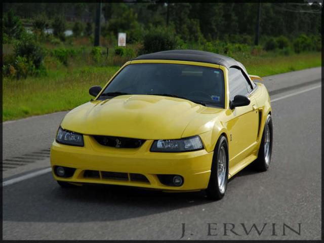 Twin Turbo Mustang Cobra convertible with 1000HP and 1050TQ. Only 3600 miles on drive train and 56500 miles on the car. This car was recently featured in 5.0 Mustang and Super Fords magazine in 10/2012. No expense was spared in the building of this car. The car is extremely clean no accidents and garaged kept. Visual mods to this car consist of 04 rear Cobra deck lid and NEW 04 full interior, Cobra R hood, SVE Series 1 black wheels 18x9.5 front and 18x10.5 rear M/T drag radials. Fastlane Motorsports 1,200 RWHP 4V Long Block, 03 Cobra forged crankshaft, Eagle H-beam forged rods, Custom 8.5:1 compression CP forged pistons with Total Seal piston rings and 03 Cobra Camshafts, Fastlane Motorsports Stage 3 ported and polished 4V cylinder heads, 01 Cobra intake manifold with ported throttle body, Weapon X coils, Melling Billet Oil Pump, Canton Oil Pan and all put together with ARP hardware. Power Adder - HP Performance twin-turbo kit with 57mm Garrett turbochargers with air-to-air intercooler and Snow Performance water/methanol dual nozzle system with safe-injection. 1,200 RWHP fuel system - Aeromotive A1000 fuel pump with Teflon-lined steel-braided lines, Fore Precision fuel rails, FRPP 80-lb fuel injectors, Aeromotive regulator and SCT mass air meter. HP Performance turbo headers with HP Performance H-pipe, and Flowmaster mufflers. T56 six-speed built by UAR Performance with Pro Motion Performance gear set, 26-spline input shaft, 30-spline output shaft, McLeod RXT twin-disc clutch, MGW shifter and PST aluminum driveshaft. Rearend solid-axle 8.8 conversion with FRPP Traction-Lok differential, 3.55 gears, Moser 31-spline axles, and Moser C-clip eliminators. Stock PCM custom tuned by Fastlane Motorsports using SCT X-Cal. There are two tunes one for 93 octane (15psi) and one for 93 octane plus water/methanol (24psi). The Fastlane Dyno sheet shows 890RWHP and 928RWTQ on the 25psi tune and 714RWHP and 774RWTQ on the 18psi tune. Stock Gauges with AEM Tru-Boost gauge controller, AEM wideband, Auto Meter Phantom oil pressure, fuel pressure gauges and a LED shift light. UPR Products tubular K-member, A-Arms, coil-over Struts, rear upper and lower adjustable control arms, sub-frame connectors and lowering springs. Lakewood 50/50 adjustable shocks. Also included is a extra set of wheels Weld Pro Stars 15x4 up front and 15x10 in rear with M/T drag radials. Below are 3 video links : http://youtu.be/XsqCOSVX-7I - http://youtu.be/ar3xOgtA1ns - http://youtu.be/_F_Wfs9CL3U. Call 912-547-8802 if you have any questions.