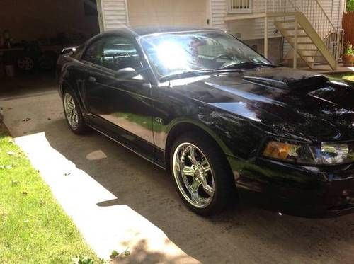 Black 2001 mustang GT automatic transmission. 102,000 miles. Custom 18 inch American Racing chrome rims with brand new tires and brakes. Leather interior. Car runs great, never any problems. Second owner.