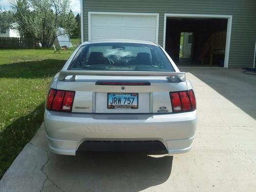 THIS IS A RARE LOW MILEAGE VEHICLE THAT WAS PURCHASED TO PRESERVE, BUT THE OWNER HAS SUSTAINED AN INJURY AND NEEDS TO SELL. PICTURES ARE PENDING, AND ANY SPECIFIC QUESTIONS CAN BE ANSWERED THROUGH EBAY OR BY JIM AT 952-220-0484. THIS CAR TOUTS 360 HORSES AND HAS A 5 SPEED TRANY AND A SUPERCHARGER. THIS IS A RARE STEED AND A GREAT COLLECTABLE. THE FRONT FACIA HAS SCRAPE/CRACK IN THE PLASTIC, AND THE ORIGINAL TIRES HAVE AGED, OTHERWISE IS PRISTINE.