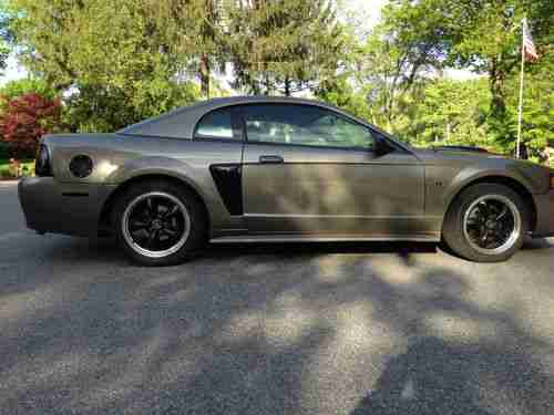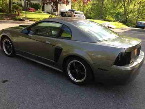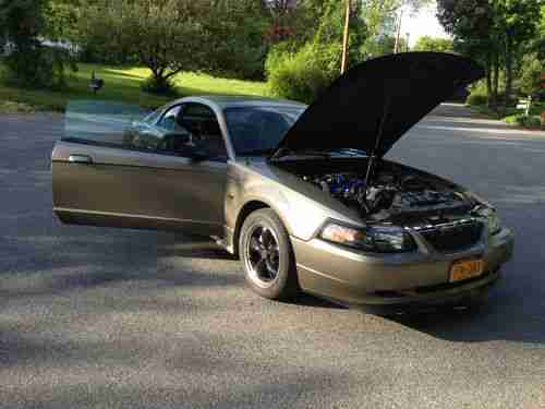 Up for sale is my 2003 Ford Mustang GT. Awesome car to say the least, has just over 70k miles on it and runs great. It's 5 speed manual transmission and 4.6L V8 are a great combination for this car and makes it very fun to drive. In the past 6k miles this car has had a complete tune up and overhaul of all drivetrain fluids (motor oil, transmission fluid, differential oil, brake fluid, power steering fluid, and coolant,) as well as many new parts including: new NGK Iridium spark plugs, new Accel ignition coils, new Tokico shocks and struts all the way around, new brakes with cross drilled and slotted front rotors, new water pump, new Ford Racing intake manifold & gaskets, new cooling hoses, new serpentine belt & belt tensioner, 4 new oxygen sensors, and much more. This car rumbles to life inhaling through a K&N cold air intake, and exhaling through a BBK catted X-pipe and a Magnaflow catback exhaust. Sounds great without being obnoxiously loud, and gets lots of compliments. Have put lots of money into this car making it nice, has many upgraded parts such as: SVT cobra front seats (leather and suede, very comfortable), HID headlamps, 17" black and polished bullitt style wheels, sequential turn signals, billet interior pieces, Mach 1 front bumper lower lip, and much more. Car is perfect other than a few minor paint defects. Furthermore, this car has a few factory options such as the Mach 460 stereo, factory alarm, traction control, fog lights, and stainless foot pedals.