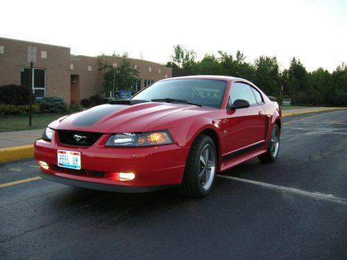 For your consideration Offered is a "Like New" 2003 Ford Mustang Mach 1 in Torch Red with 2,335 Miles. That is correct only 2,000 Miles. This Mach1 has been cared for meticulously by a perfectionist. It is correct in every way. I do not know of a flaw in the paint or interior. It would be & has been mistaken for a Brand New car. Just look at the pictures which I have offered. This vehicle has never seen rain or snow & the car has NOT been molested with modifications. The engine is bone stock as well as the transmission, drive train & suspension. The only changes made are the following: Magnaflow (magnapak) Catback Exhaust, Steeda Triax short throw shifter w/Hurst Chrome shifter & nostalgic shifting ball. I also just replaced the Factory tires with Brand New Rousch RS-3 Performance Tires. All the removed parts will be included with the purchase. It has NEVER been in an accident & just passed the Ohio Emissions test. I could go on & on about this car, however if you are interested it can be viewed locally or you may contact me through E-Bay E-Mail & leave your cell phone # and I will promptly return your call . If you are truly interested in a Mach1 there are only a handful like this one in the U.S.A. This is NOT a run of the mill Mach 1. This car is something special! Please E-Mail with any questions. Thanks for the Visit! - Chuck