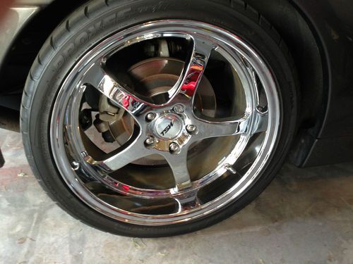 TSW volcano chrome 19x8 19x9 1/2, 1/2 ” hub centric wheel spacers and studs on back. I still have the stock wheels that will go with car, plus when I bought the rims, I bought a spare front and spare rear wheel that go with it.